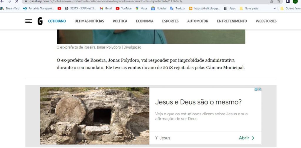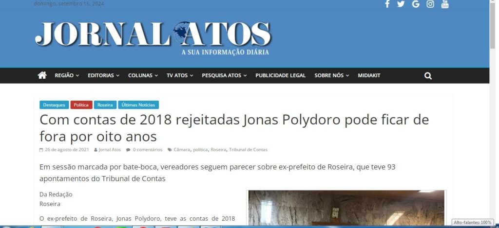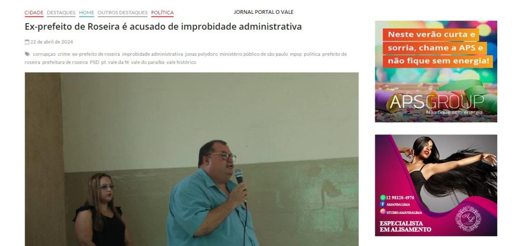 Veja alguns recortes da imprensa local e do estado sobre IMPROBIDADE administrativa do ex-prefeito Jonas
