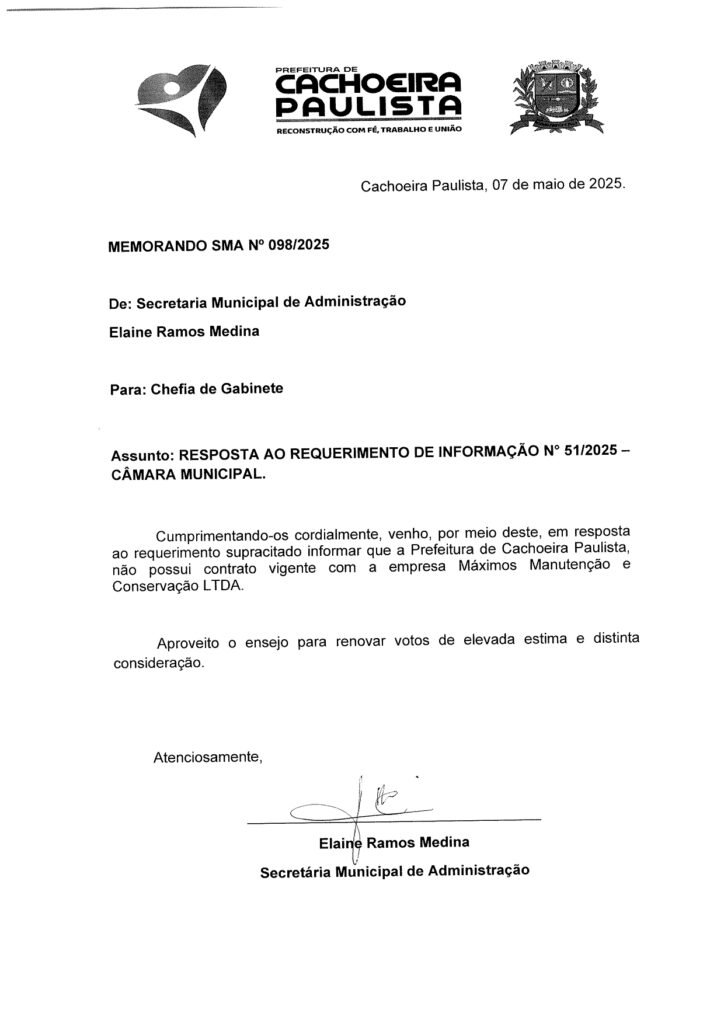 Em maio de 2025 a Prefeitura pagou R$ 30.000,00 para a empresa Maximos; em abril de 2025 pagou R$ 50.000,00 Mil; em março a despesa foi de R$ 57 mil e em fevereiro foram R$ 6.450,00.