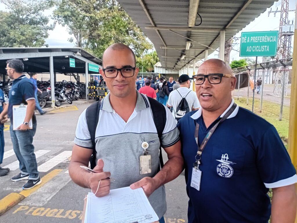 O Sindicato dos Metalúrgicos de Cruzeiro deu início à Campanha Salarial 2026 com uma mobilização nas portas das empresas Maxion e AmstedMaxion nesta terça-feira, dia 23. O ato contou com a presença do presidente Cleber Graciano, conhecido como Binho, e de toda a diretoria sindical. A pauta de reivindicações será construída em conjunto com a federação da categoria, com foco na conquista de ganhos reais para os trabalhadores. Além da mobilização, representantes do sindicato se reuniram com a direção das empresas para discutir alternativas que possam frear o ritmo de demissões registrado nos últimos meses. “O trabalhador não pode ser penalizado pelas oscilações do mercado. Estamos aqui para garantir estabilidade, respeito e valorização”, afirmou o presidente Binho. O tesoureiro do sindicato, José Antônio Filho, destacou a importância da união da categoria neste momento. “Estamos atentos e mobilizados. A luta é coletiva, e só com participação ativa dos trabalhadores conseguiremos avançar”, disse. Já o vice-presidente Haroldo Marcílio da Silva Santos, reforçou o compromisso da entidade com a defesa dos direitos da classe. “A Campanha Salarial é uma oportunidade de reafirmar nossa força. Lutamos por melhores condições de trabalho, salários justos e segurança no emprego”, declarou. A diretoria do sindicato informou que novas ações estão previstas para as próximas semanas. O sindicato reforça que é fundamental que os trabalhadores assinem a pauta de reivindicações. Esse gesto fortalece a representatividade da entidade nas negociações e demonstra o engajamento da categoria na luta por melhores condições. Juntos, somos mais forte.